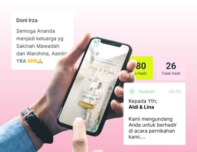 Kirim kabar gembira lebih mudah dengan undangan digital dari Momen Indah yang elegan dan eksklusif. Pilih dari 450+ tema yang dapat dikustomisasi sesuai keinginanmu. Dengan undangan digital dari Momen Indah, kamu dapat menyebarkan kabar bahagia dengan cara yang lebih modern dan efisien.